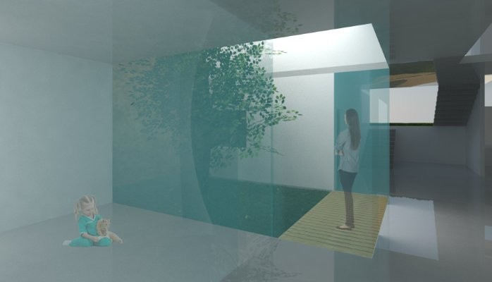 The site had the luxury of space, and a hierarchy of gardens and courtyards was carved out: front lawn, garden, inner courtyard. Reminiscent of the traditional sahn, the internal courtyard brings the outdoors right into the center of the house, enveloping it with glass, and making it visually accessible from all parts of the house, including the drawing room, guest bedroom, living/dining/kitchen, and the family room on the upper level.